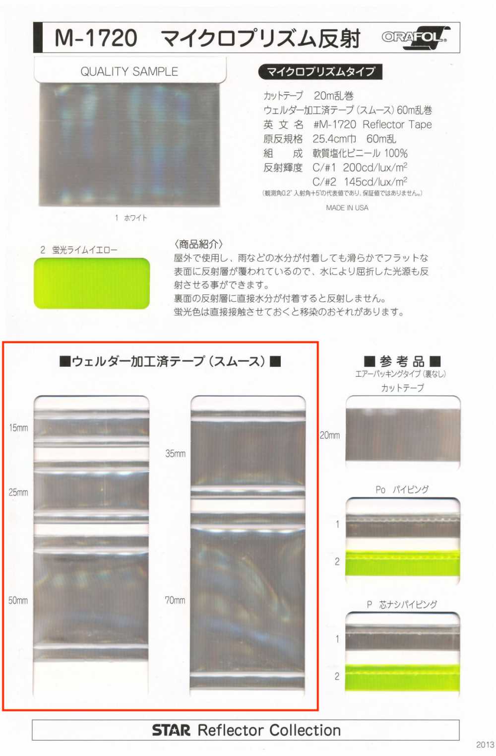 | 사양 | 1롤: 약 60m 롤 라디언스: C/#1 200cd/룩스/m2 C/#2 145cd/룩스/m2 (이는 관찰각 0.2°, 입사각 +5°에 대한 일반적인 값이며, 보장된 값은 아닙니다.) |