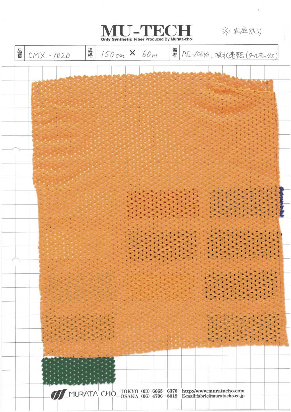CMX-1020 폴리에스터 트리코 메시, 습기 흡수 및 속건성 [아울렛][원단] 무라타초(MURATACHO)