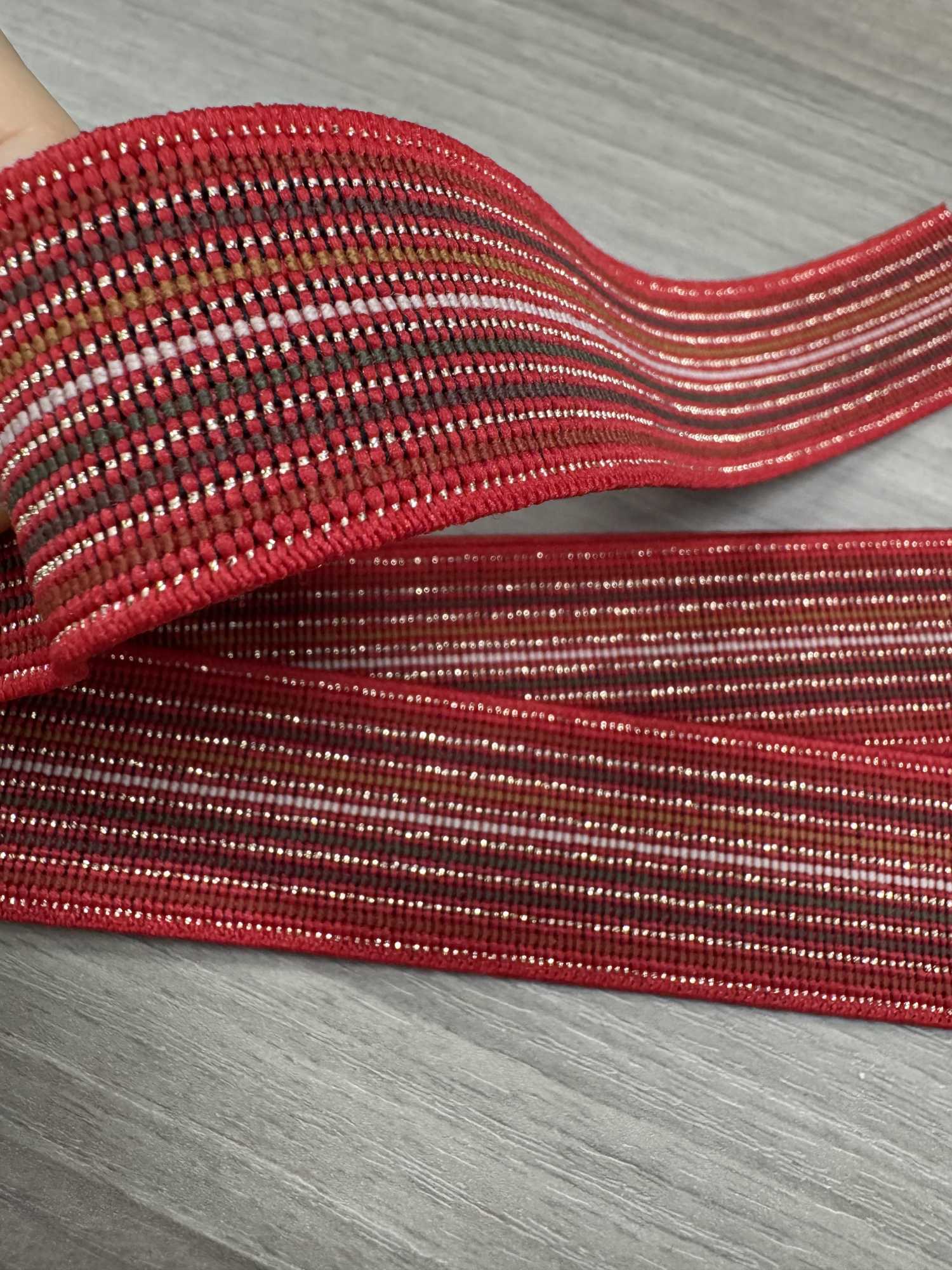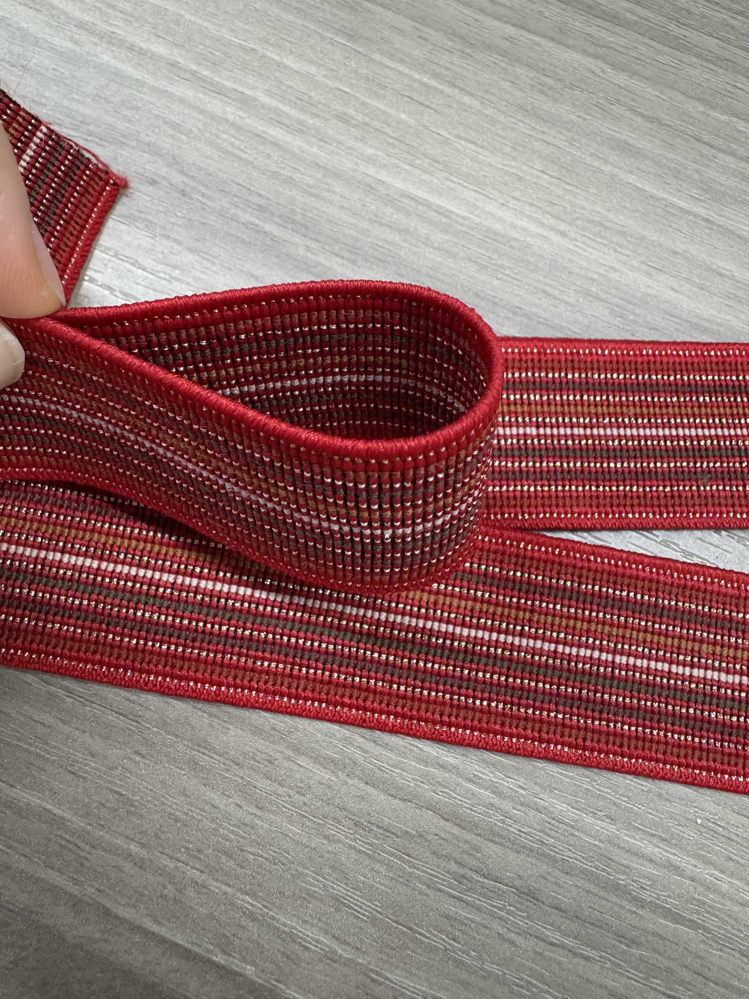 두께도 딱 좋고 아주 튼튼해 보여요. 신축성도 좋아서 늘렸다가도 바로 원래 모양으로 돌아와요. 금색 부분도 예뻐서 팔찌 장식이랑 잘 어울릴 것 같아요.